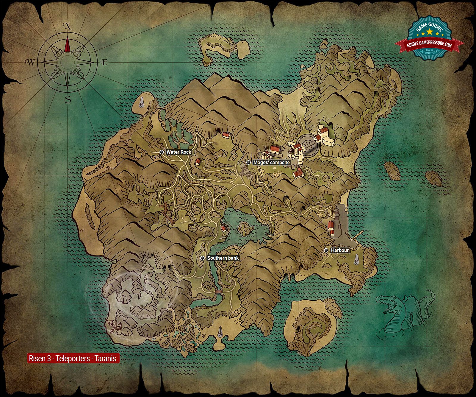 The above map presents Taranis isle and the black dots on the map mark the places, where you find the teleporters that can be activated, From the moment at which you activate a given teleporter, you can select it from the level of the map of the isle, regardless of where you are. Also, it is worth noting that you can reach all of the teleporters right during your first visit to the Taranis isle.