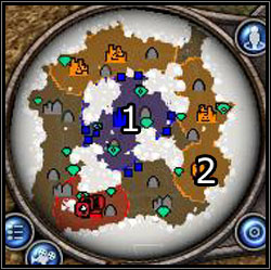 ![]() | You now get to choose whether you'd want Arri or Lenora to accompany you through the rest of the campaign. It doesn't really matter, as you'll be controlling the Cuotl from now on. Now you face the Cuotl tutorial, which guides you through the basics of this fairly different race from those you already know. Follow the instructions, constructing the Reactor District and a Fane, and take over the nearby Shrine. Kakoolha, the local renegades' leader will join you. You now have to destroy the central Cuotl city (1) before the enemy takes over all of Kakoolha's cities. |
