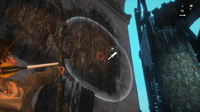 As you climb up the tower, you will have to shoot some more arrows at the wooden surface...