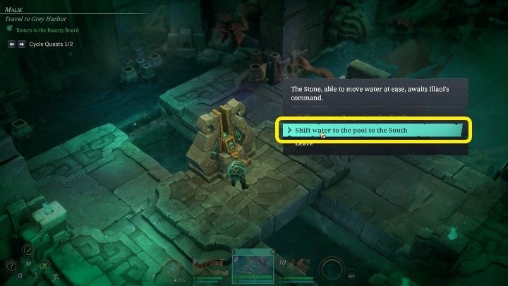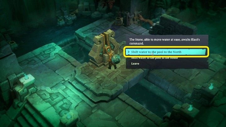 You have activated the mechanism that controls the flow of water in the Buhru Temple. Choose the option that will pour water into the north pool.