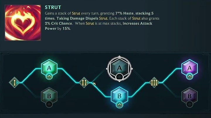 In the picture above, you will find our suggested way of developing Miss Fortune's Passive Skill - Strut: