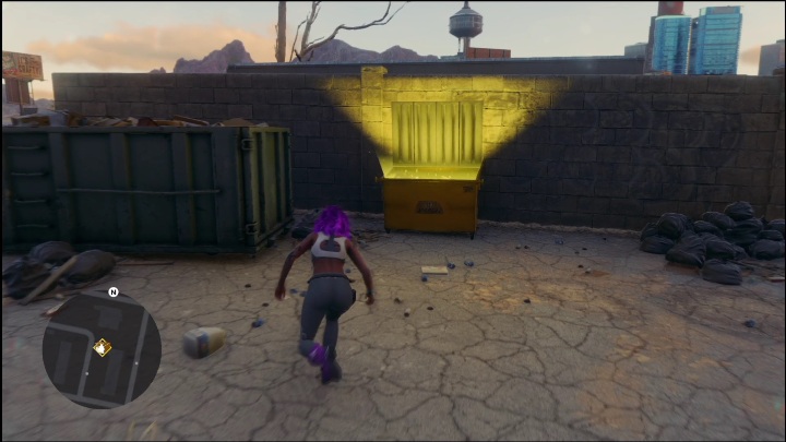 To complete this activity, you only need to search the dumpster that glows gold. You only get 50 XP from this container.