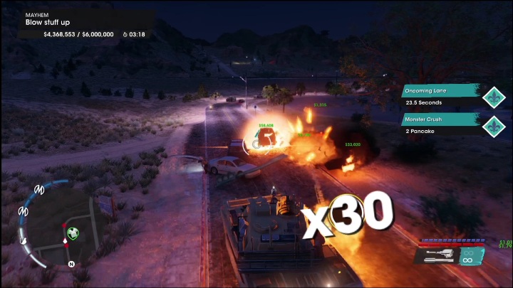 When performing Chaos, try to destroy as many cars as possible - aim at parking lots and expressways. This way, you can perform quite a combo that will increase the score and the points you get during the activity. If you hit a certain point level, the quest will end. After completing 5 tasks, go to the venture. After talking to the man, you will complete the quest and receive the rewards for completing the The Big One in 100%.