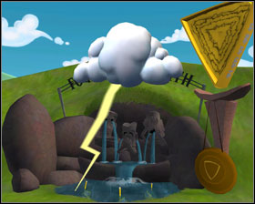 Fountain of youth is guarding by piranhas. See 2 yellow and 3 blue gongs placed near fountain and Moai heads. Above two of them, there are small Bermuda triangles. If you hit the gong (by mallet or shoot it), Bermuda triangle will appear above. They are some kind of portal between blue and yellow triangle. Try to put your hand through.