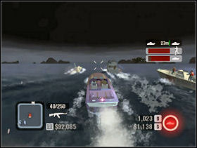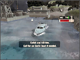 After next talk with Dock Boss you will know that on the island was informer. Now he wants to give his information to government. You can't allow him to do this! Jump to the water, call motor boat (I recommend Attack Boat) and chase him. You must destroy his motorboat, be careful - he has backup. You have limited time - if the informer change to the big ship, the mission will be failed.