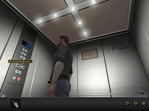 In the meantime, Max gets stuck in an elevator by van Rijn, who doesn't want Gruber to leave the complex.