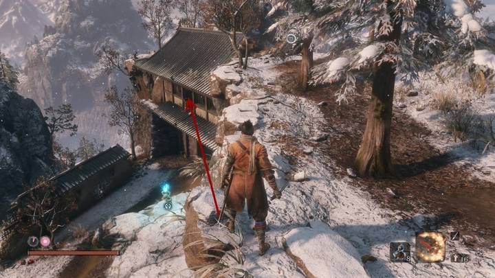The building's basement has a few useful items. To get there, you have to destroy chests blocking the passage. Many secrets in Sekiro are hidden in this way.