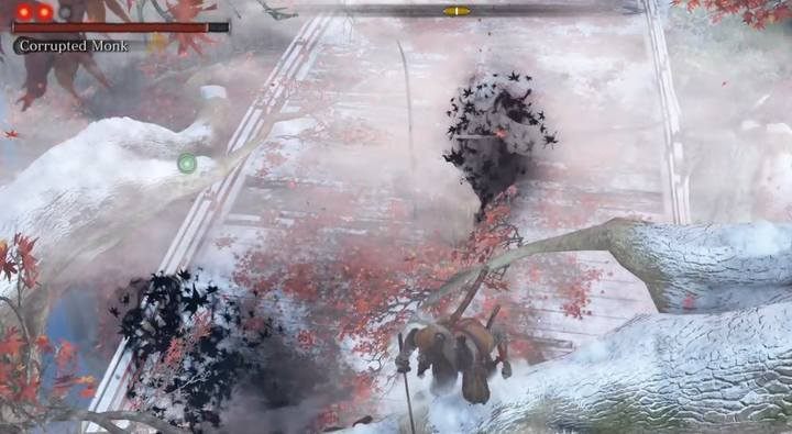 The first thing you will find in the new location is a bridge that protects the improved version of Corrupted monk - this enemy has even 3 health bars, oh dear. It's a boss that has to be killed due to the game's story. It appears in the arena when you are in the middle of the bridge. The battle is divided into three stages: