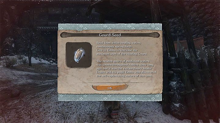 Take Gourd Seeds to Dilapidated Temple and meet with Emma the Physician. Give her this item - your Healing Gourds will increase by one.
