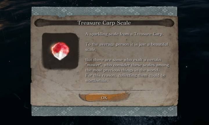 This merchant accepts only Treasure Carp Scales. You can get them by killing pink Carps found in various water bodies. Sometimes, these Carp Scales can also be found as loot.