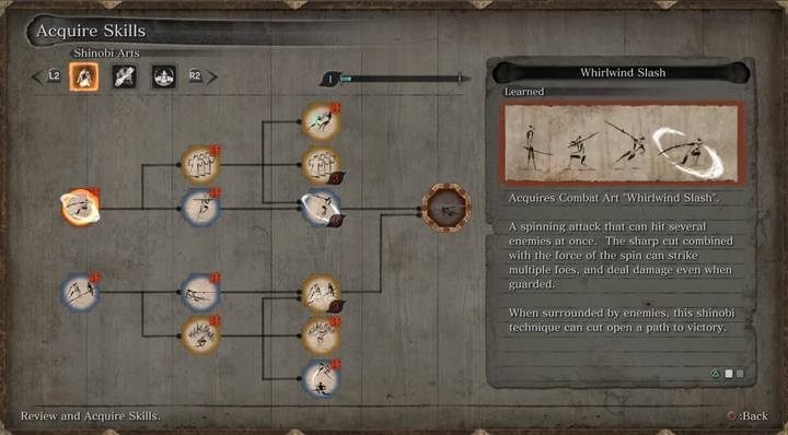 Sculptor's Idols also give you the option to upgrade your character - new options are unlocked after you purchase previous ones (this is for both skills and prosthetic arm upgrades). At first, you will only be able to increase your stats with Prayer Beads (their amount is displayed on the right). You get them by defeating powerful bosses - Prayer Beads are added to your inventory automatically after dealing a fatal blow.