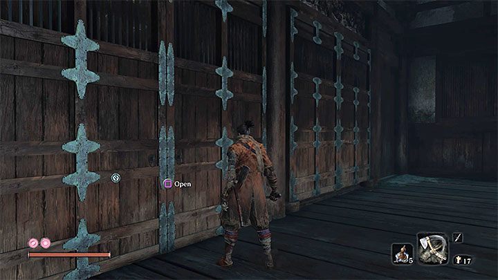 Inside, you will face a mini-boss called Long-arm Centipede Sen'un. Jump down on the enemy to perform the first Deathblow. The beast attacks with a series of rapid attacks - try to deflect them all. Luckily, the enemy doesn't have a lot of health. You can make him vulnerable by using Shinobi Firecracker. This mini-boss drops a crafting material and a Prayer Bead. This room also has a few containers with loot. The full strategy for this fight can be found in the Bosses chapter.