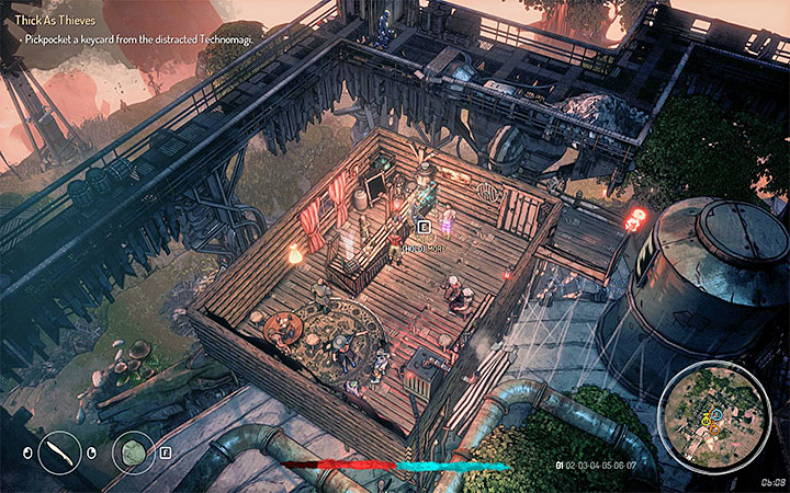 Go to Cirrus bar. Your objective is to pickpocket a keycard from a drunk Technomagi. Colm can distract him, that is if he is still alive. Stand near the Technomagi and wait for a good moment to steal from him (NPCs should be facing other directions). If you stole Shipment Terminal Access Card but you were detected then run away as fast as you can and lose the Technomagi and other enemies. You can also kill the guard but this fight will be a challenge.