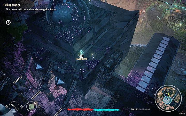 In the third mission you have to reach three switches and redirect energy. Again, Technomage Armour is VERY useful here - two out of the three switches are in Port Horizon. Reach them in any order and reveal the switches by using Sense Mode. The last, third, switch is in the quarantined part in Lewmer cliffs (the permission from Valuable Experience quest will help you get there). The switch in the cliffs is presented in the picture above - climb on the rooftop of the tall building to reach the switch. After that you can go back to Ramus and get your reward - Armour Core Upgrade Physical Resist I Schematic.