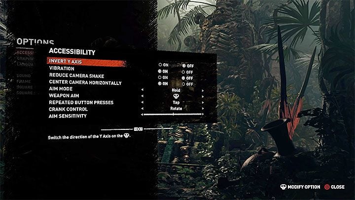 Additional controls settings for Shadow of the Tomb Raider can be found in the Accessibility tab. Some of them are generally applicable, but some options are designed for people with various degrees of disability. They can, for example, allow you to press a button once instead of having to hold it down, or turn off the need to make full turns with the analog stick. The list of settings in the picture above applies to the PS4 version, but they should also be all available on the Xbox and PC.