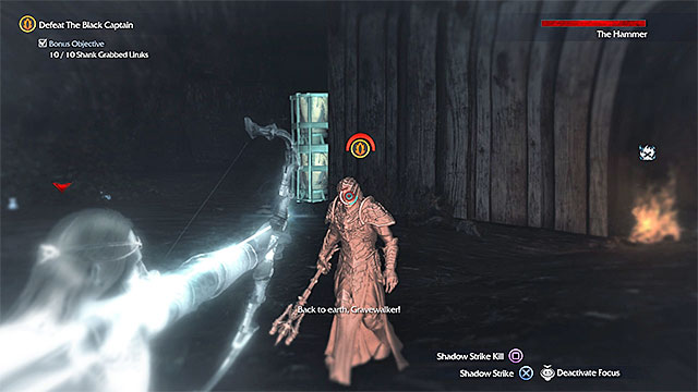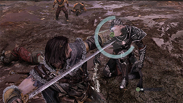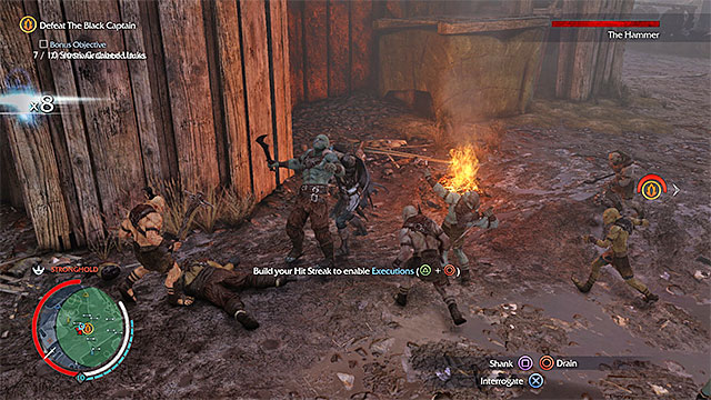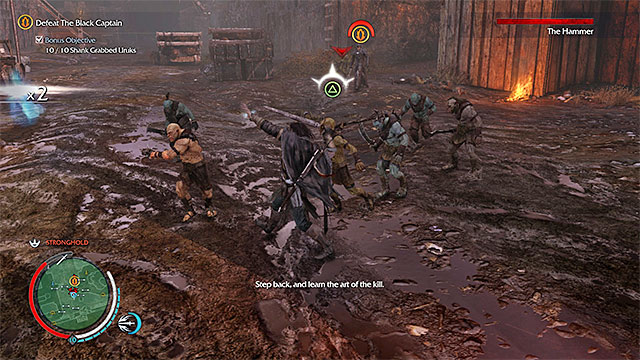 I recommend that, right after the fighting starts, you complete the secondary objective of this mission. You need to grab the regular orcs and press the dagger key/button to deal damage to them (Shank).
