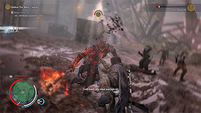 The best way to deprive The Hammer of health points quickly, is to attack him in melee. If you land standard blows with your sword, it is imperative that you dodge to the side, every three blows, because this is when the boss uses his strong attack. The best tactic, in my opinion, is to bring up the multiplier, thanks to attacking the regular orcs, and using special attacks (e.g. Execution) on the main boss.