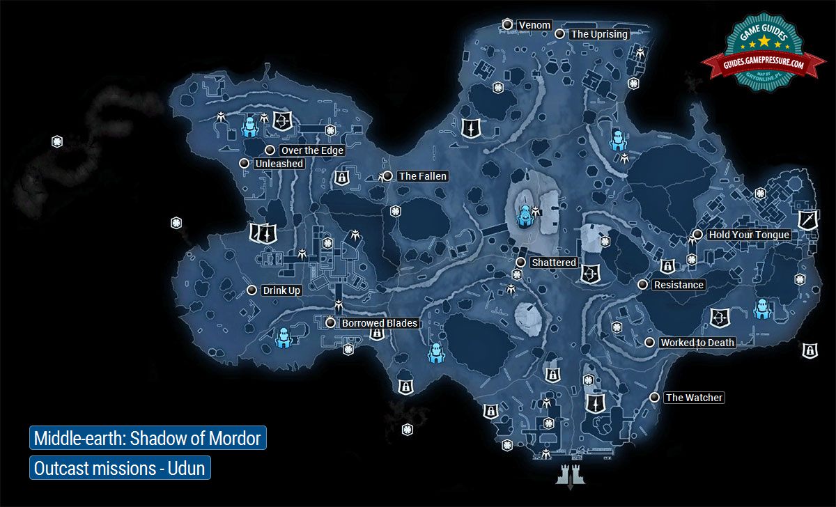 - Middle-earth Shadow of Mordor: Map Udun Outcast Rescue Missions