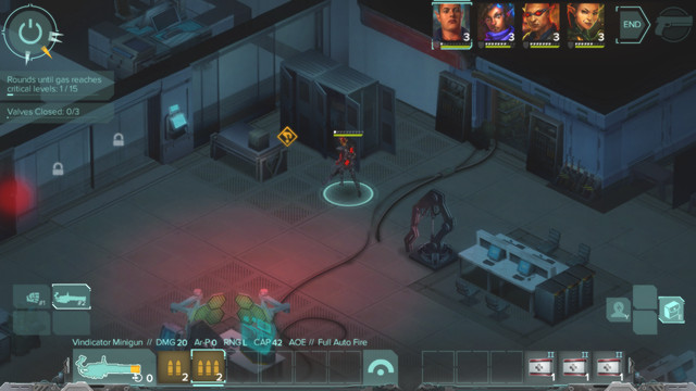 Once you pick up the laser from the laboratory, whether you like it or not you will have to let other shadowrunners to the room (for releasing them you will receive 1 Karma point). They might follow you and help you in fighting the upcoming waves of enemies. Four guards will come from the stairs, and after around 5 turns another four will come from the elevator. After eliminating them you will receive a card from the freed colleagues and you will be able to open the safe (M10,9).