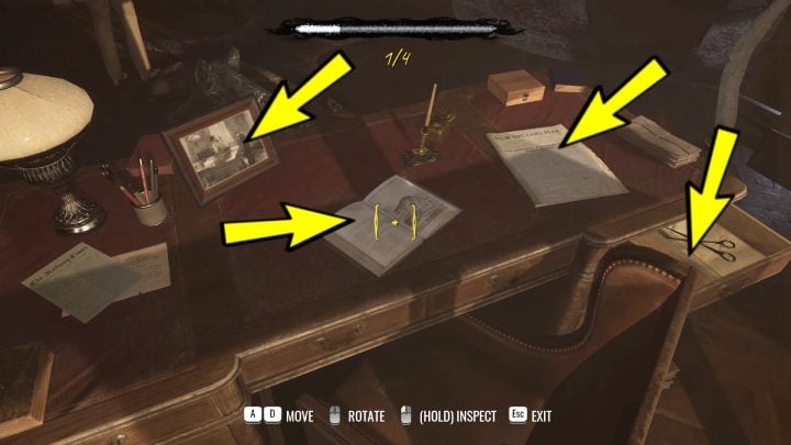 Activate Concentration Mode and examine the drawer and the flower on the table by the bed. Now approach Arneson's portrait and check: