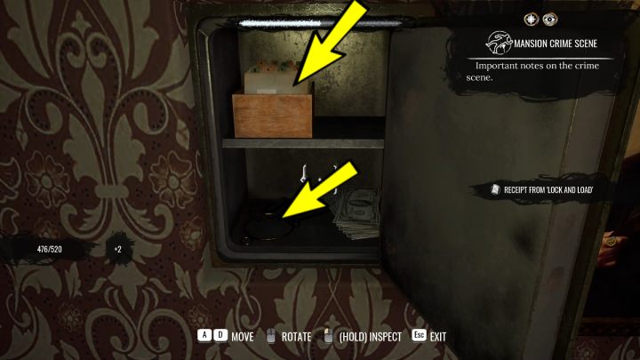 Activate Concentration mode and examine the traces on the wall. Thats all for the ground floor, time to search the upper floors.