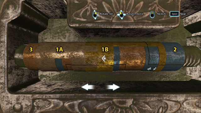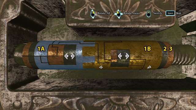 Switch (2 clicks) to nr 1A and rotate it so that the horizontal line on its edge matches the ones on nr 2 and 3.