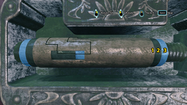 Rotate cylinder nr 1 so that a window in the middle is visible.