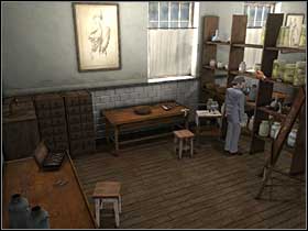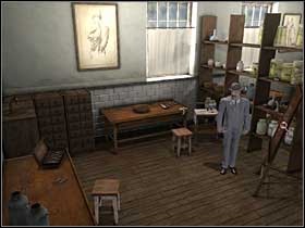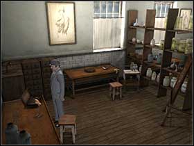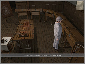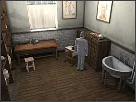 Go to the other side of the desk, move it with the hook and take the card that is hidden there. This is the Encoded Message which must be decrypted by Holmes. At this moment Andrew will come with the list of stolen bodies.