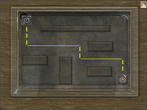 The next puzzle board will appear. You must change the position of all magnets. When you are moving one of them, the other moves automatically, and its path is a reflection of the route of the first magnet. You have to try not to hit iron any bar. The easiest way to find a solution is shown above. As a matter of fact Watson will get the second magnet and a hook, which was attached to it.