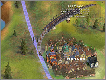You will have less than 30 years to fulfill all objectives from the first level of this scenario. As a result, a lot will depend on where you have decided to start your game. You could make your life a lot easier, however you will have to choose wisely. I'd strongly recommend starting this scenario in Monaco (you can look for additional info in the 'hints' section). Choosing this city will allow you to reach two of the required towns (Marseille and Lyon) much faster. You will have to start off by creating a connection that will allow you to reach Marseille. Sadly, this will probably cost you a lot of money. You will have to build several bridges and tunnels. The same goes with the connection between Marseilles and Lyon. I had to build one large tunnel here. It was an expensive investment, however you won't be able to reach this city from any other side (without having to build a tunnel). Additionally, you will have to build new tunnels here, later during this mission. You shouldn't wait this for too long, especially a lot of different trains will be using these tracks. Thankfully, these connections will be very profitable, so you won't have to worry about losing too much money. You mustn't forget about the competition. Sooner or later, other railway companies will try to take away some of your clients. You will have to be ready for that. Make sure that you modify your existing connections. Reaching Paris is going to be very difficult. I had to avoid one of my competitors, by building a large number of bridges. You could also try and reach Paris from the other side, however that would require you to reach the northern part of the map (preferably from the east). You'd also have to connect Geneva and other towns from that region to your existing grid.