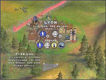 I would recommend starting the game by creating three different connections. Two of them should lead to other cities. I'm sure that you know what I'm talking about. Connect Marseilles and Geneva (it's to the north) to your tiny grid. You should also be able to find at least one factory here. I was able to add a mine to my main grid. You should also take a closer look at the demand windows. Thanks to that, you'll know exactly where to deliver the newly acquired resources. Modify your existing connections or create some new ones. Bear in mind, though, that you shouldn't be spending your money on unnecessary connections. There are also a lot of hills in this area, so you shouldn't add too many carriages to your trains. Otherwise you would have paralyzed your traffic. Try upgrading your existing connections before you decide to proceed to other areas of this map.