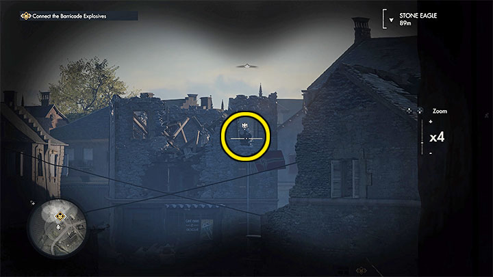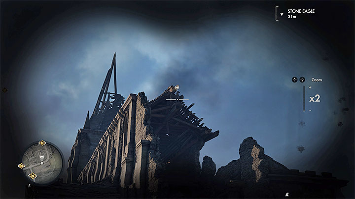 The eagle is in a window of a destroyed building in the northern part of the map. You face the Tiger tank here, but you can also hit the eagle from the northern town if you get a good vantage point.