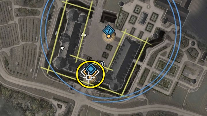 The first artifact is carried by the sniper hiding inside the building to the north-east of the courtyard of the chateau. This place is shown in the pictures above.