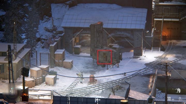 Return to the aforementioned track going leftwards and reach its end. There, on the fuse box, you will find a place to leave the last C4 (seen in the image above).