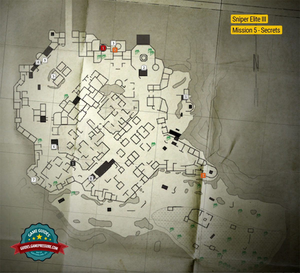 - Sniper Elite 3 Afrika: Map of collectibles in the fifth mission