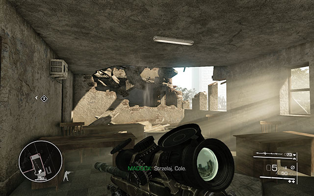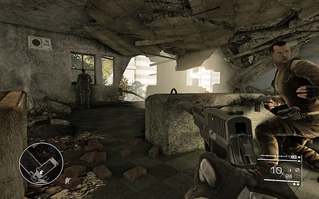 As the mission begins, run after Marinov to the nearby building. Right behind the corner, wait a bit for the guards to stop talking and when Maddox gives the order - lean out and take out the soldier in the neighbouring room.
