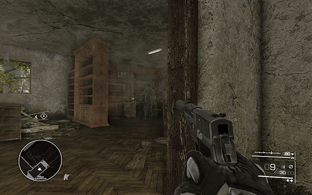Move onwards and eliminate another soldier with a knife or silenced pistol on your way. After reaching the next room, sneak to yet another enemy and kill him as well.
