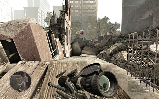 Move a bit deeper and you will see another sniper - this time on the roof of the building on the right [150m].