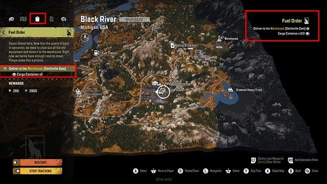 You can activate contracts from the quick menu, during the game. Tasks and contests need you to reach the destination of their activation. At the same time, you can have only 1 mission active. Its status can be seen in the top right corner of the screen.