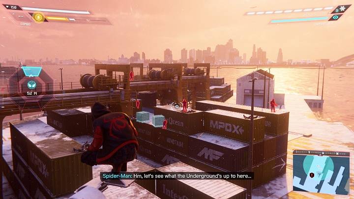 2) The box in the center of Greenwich is in the garage of the Roxxon station. Pull the left gear (L1 R1) and quickly aim (L2) and shoot (R1) it from the Web-Shooters to open the gate.