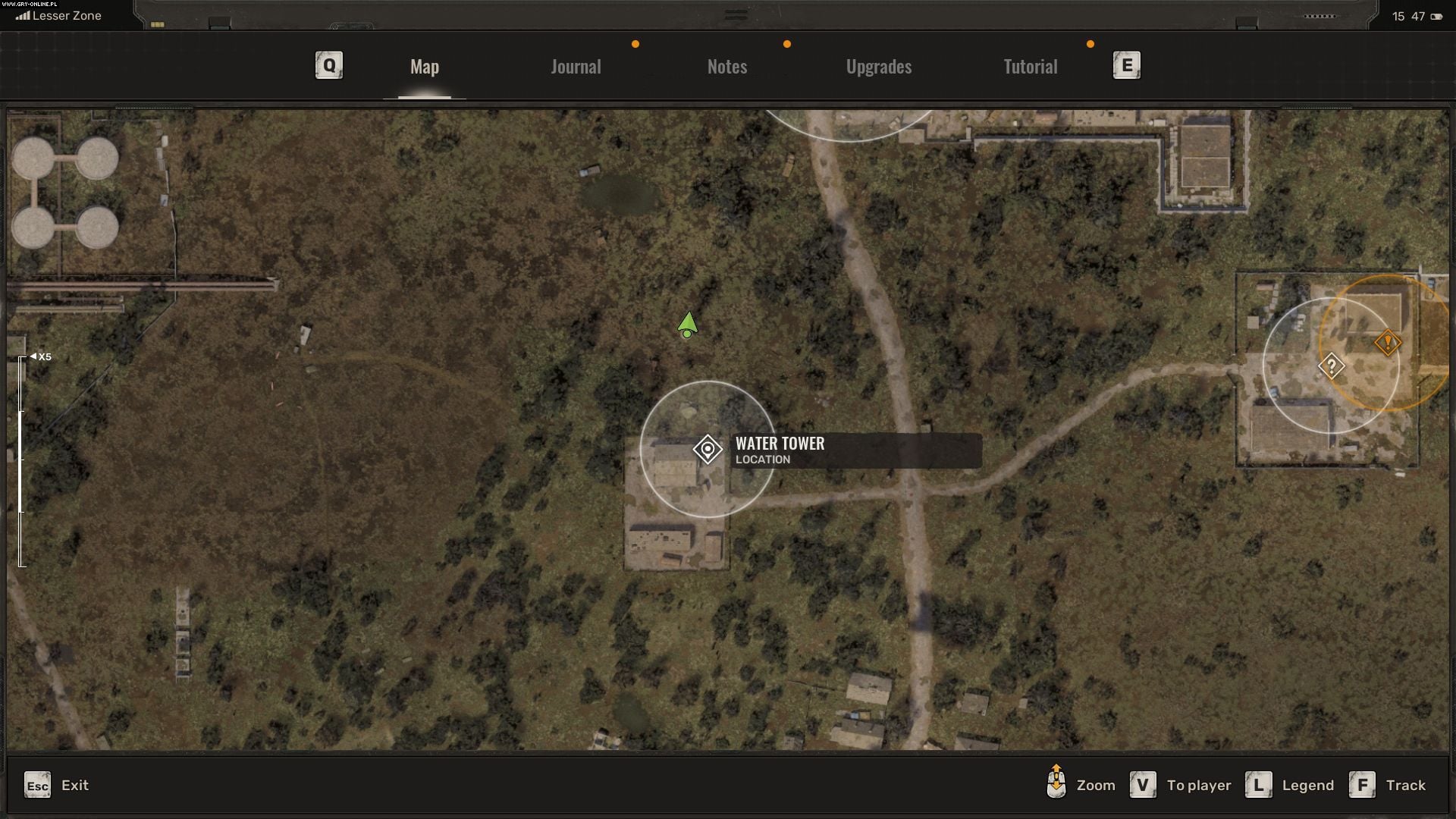 North of the Water Tower, near the Zalissya camp, you will notice a tower storing water (see the green player cursor). Climb to the top using the ladder, watching out for suction anomalies.