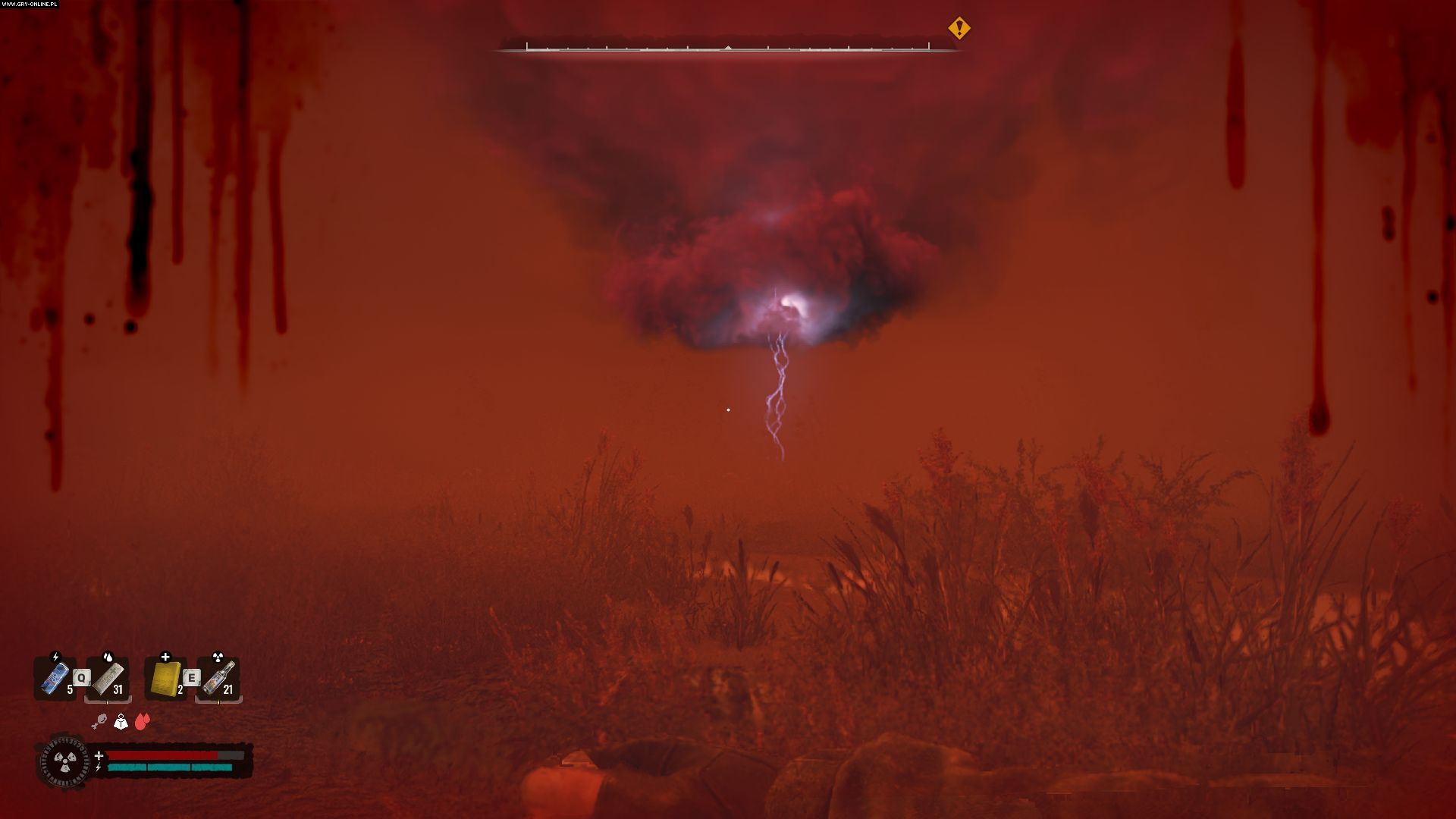 Emission, also known as blowout, is very dangerous. It appears gradually - it is easiest to notice it thanks to radio messages and changing weather. You can recognize it when the sky starts to turn red. In addition, you will also see a cyclone that will start to grow larger with each passing second. It heralds changes in the Zone and a great danger that you must take shelter from.