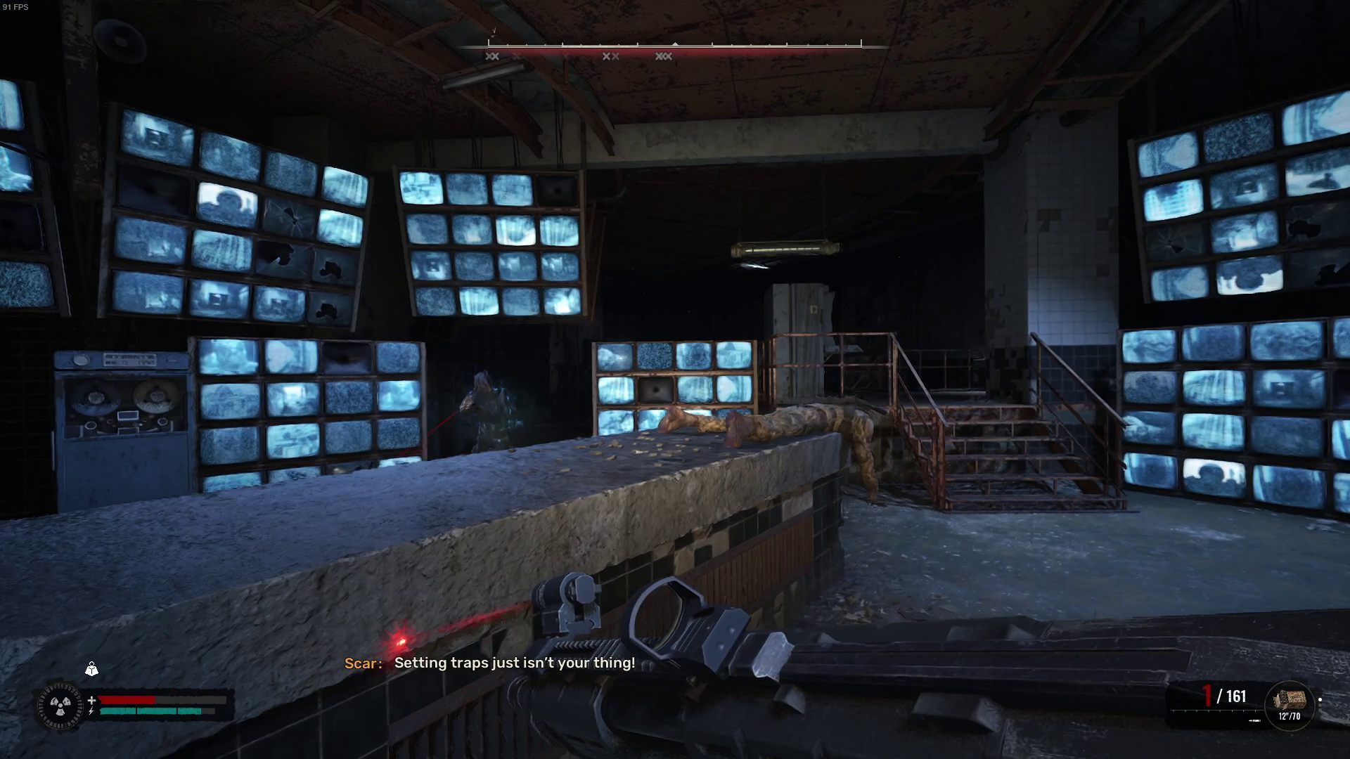 - Normally, attacks do not cause any damage to Scar. The key will be luring Scar to special panels with a red button. When the enemy is close, press the button and the surrounding TVs will momentarily stun the opponent. This is your chance to attack.