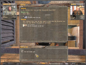 This is where you will be able to end this quest (it started during the exploration of the X18 complex). The only thing that has to be done is to give the documents to Barkeep (#1). This time you will receive a reward and you'll be able to proceed with the next important mission.