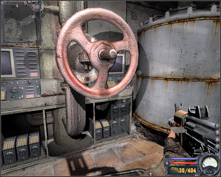 Before you'll receive your next assignment, you will have to perform one more action. Head on towards a small room which can be found near the area where the monster was standing. Save your progress and approach a large valve (screen). Press the action key.