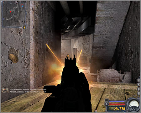 Listen to new comments made by the general and continue moving forward. Use the stairs and take a right turn after getting to a new floor. You will have to be careful, because this corridor is being patrolled by at least one bandit. Kill him and find a good cover behind the crates. More enemy units will show up in the area (screen). Start shooting at them from a safe distance. You can also consider using grenades, however you must be precise. Make sure you've killed all bandits before moving on to the next area.