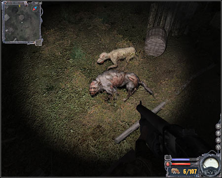 Get ready, because you'll have to kill a few other creatures here. There are a lot of wild dogs heading your way (screen). This can be a challenging battle, especially since you'll be surrounded by a lot of these animals. I would recommend that you use a good machine gun against them. Avoiding their attacks is equally important. Wait for new orders.