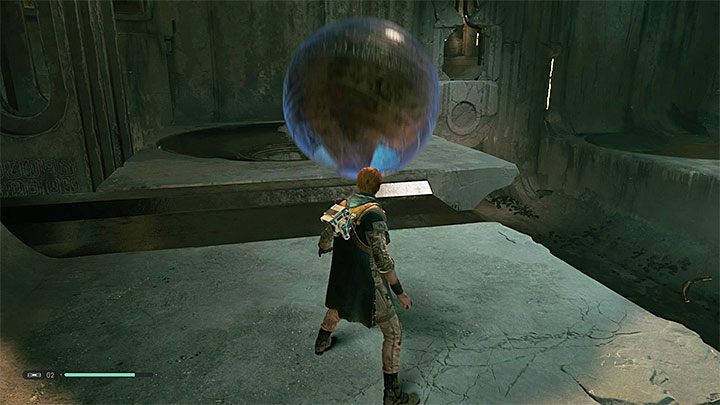 Explore a new passage. Along the way you have to grab some pieces of interactive wall and move to the left. There's a second sphere in the upper corridor. Start using the Force Push on it and get it thrown into the central room.