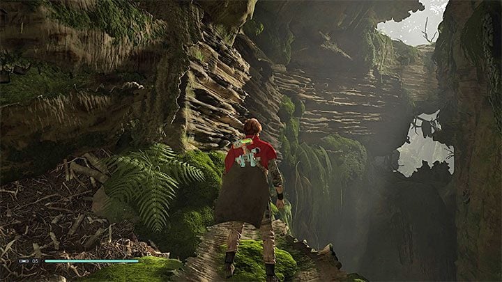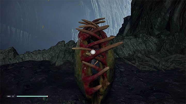 Choose the main path leading to the nearby cave - a few smaller monsters will stand in your way to that place. In the cave, be careful on the Jaw Plants carnivorous. By default, they are "open", but if you stand for a few seconds on any plant, it will "close" its maw (an example in the picture). Cal will take damage and will have to free yourself (press the specified button rapidly). It is worth noting that you don't need to avoid them completely. You can run through them or bounce off them but you need to quickly move away from each of the plants down before it reacts and closes itself.