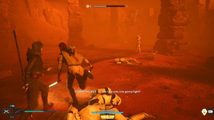In the sandstorm part on Jedha in the Star Wars Jedi Survivor, the heroes will encounter a group of stormtroopers and AT-ST that is a mini-boss. From the description in our guide, you will learn how to deflect AT-ST missiles, react to traps, deplete the machine's energy bar, and eliminate the enemy controlling it.